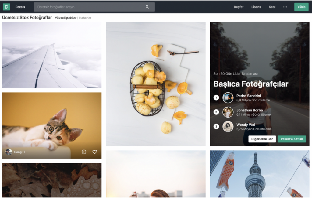 İnternette, tıpkı müzikte olduğu gibi, telif hakları içermeyen fotoğraflar ve videoları yayınlayan belli başlı siteler bulunuyor. Pexels.com ise gerek basit arayüzü, gerekse Türkçe dil desteğinden dolayı önerilerimizin başında yer alıyor.