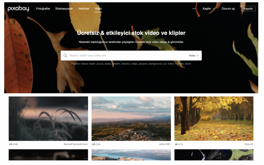 Pixabay.com ise tıpkı Pexels gibi Türkçe dil desteği ile beraber indirilip kullanılmayan uygun, ücretsiz fotoğraf ve video materyali sunuyor.